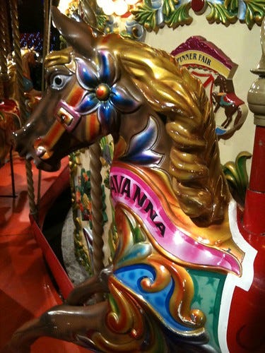 You may have your whirlygigs and rollercoasters but give me a good old fashioned Carousel and I'm a happy bunny. Flash seemed to enjoy it too...
