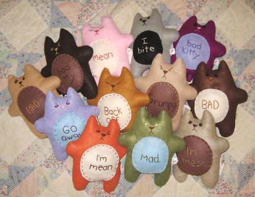 She has an etsy shop here. Looking at the angry fat kitties has actually made me feel a bit less angry. Or that could be the second shot kicking in. My MIL who I miss so much sent me a cat calender yesterday. Nope, I'm back in the hole again. Pass the bottle...