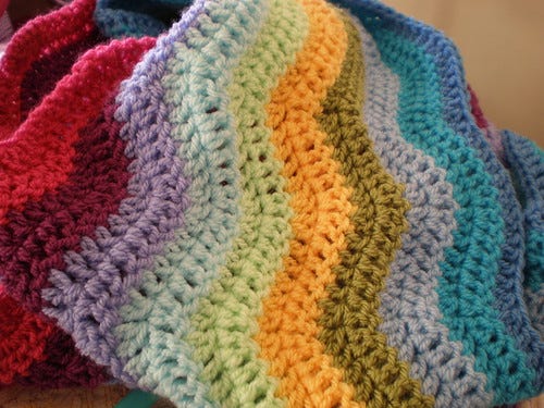 My main project at the moment continues to be the ripple blanket. I have also got a more portable pair of socks on the go but since I finally finished the sock cardi this is my main one.