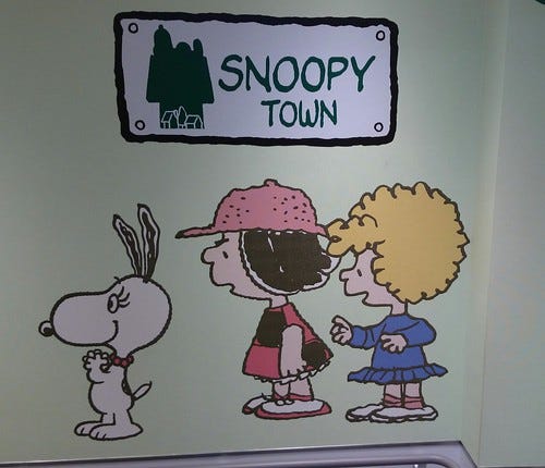 My eye was immediately caught by a sign to Snoopy Town in the basement.