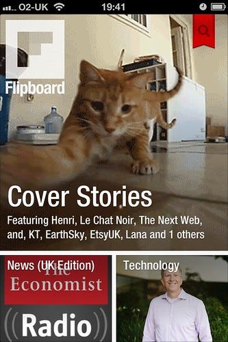 The top section is what the app decides are the top stories from all the other boxes you have. Then below that I've chosen to have UK news and Technology news. I can touch any of these to go into them in more detail. Then this is my second page of the app (I only have 2).