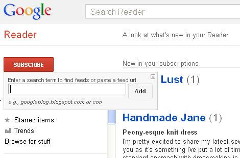 First up you need a Google account. I defy you not to have one already. If you use Google+, blogger or gmail account you've already got one. If by some chance you don't just click here and create one. If you do have one go to http://www.google.com/reader, click on the red 'subscribe' button and think of a blog you enjoy reading. Type or copy and paste the blog address into the box and click 'add'.