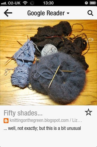 And that's it. Now, whenever you want to see what's new with the blogs you follow you open Flipbook and tap your Google Reader square. It will bring up the most recent updates. So for example...here we have something from the book guru Knitting on the Green.