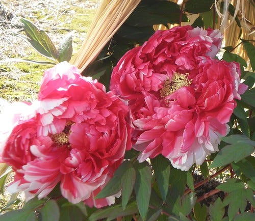 I *think* these are Peonies although I could be wrong. They certainly seem rather reminiscent of the fabric you see a lot of here.