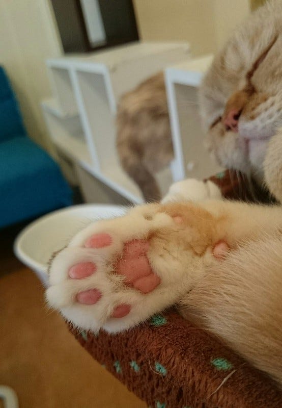 My visits to Nyafe Melange in Ebisu now number 32. How do I know this? Because I am on my fourth loyalty card. It's Bruiser. I find him so endearing. For instance, could this really be the paw of evil?