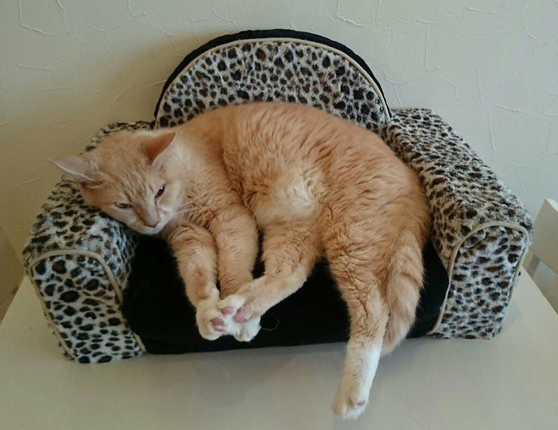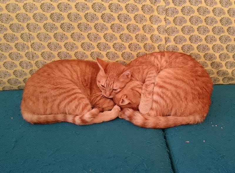I had a lovely time with "Little Ginger" (on the left) who is the youngest of them all and seemingly related to the two adult gingers there. Here he is snuggled up to his sleeping uncle (I think this is his uncle - the other adult ginger is definitely his Dad, but they're not close).