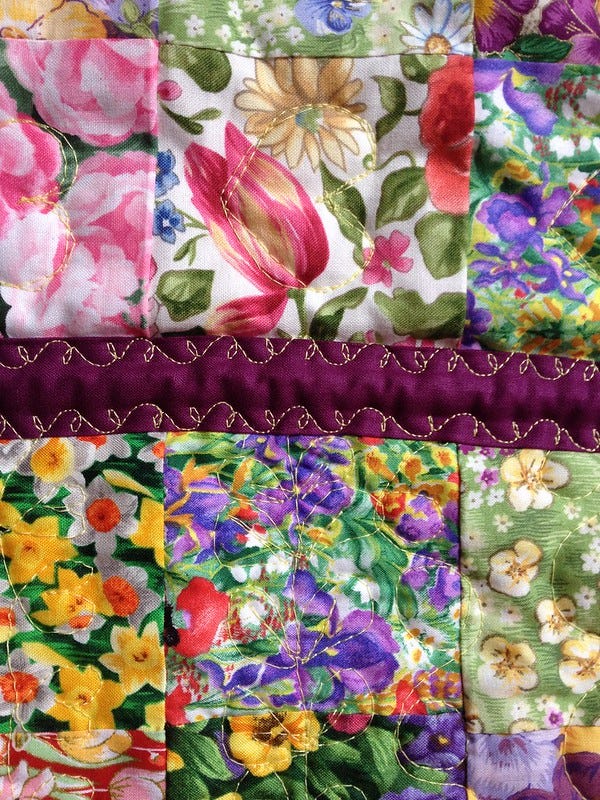 I made use of some of the flowery stitches on my sewing machine when adding the strips.