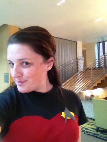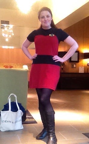 I am a real Trekkie. I love the films and the TV series up to and including Deep Space Nine. Voyager and Enterprise I am pretty "meh" about and although I love the reboots (hello Benedict) the true Khan for me is still Ricardo Montalban. With this in mind I decided to make myself a uniform that would look at home on DS9 or earlier. Where else to look for inspiration but Pinterest? This pin seemed to fit the bill.