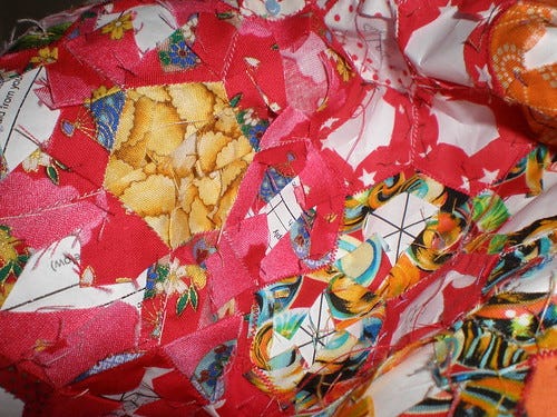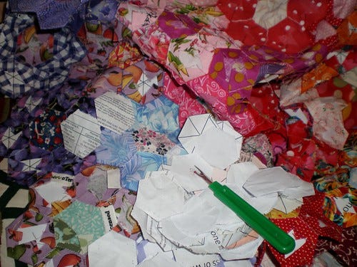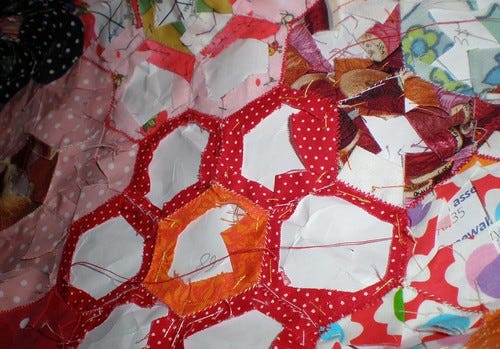 So having to remove each of these paper hexagons individually, every one having been hand sewn by myself in the first place, has given me quite a lot of time to contemplate the naughty side.