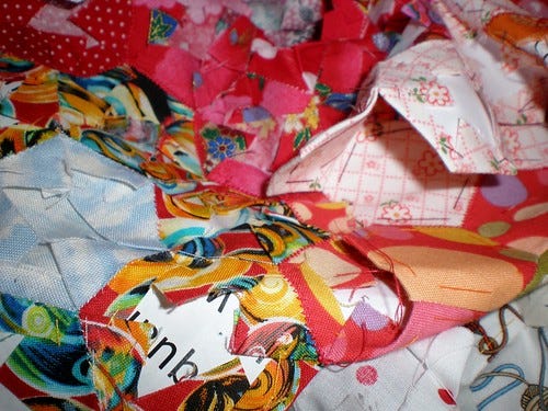 I remember talking to someone about the Kaffe Fassett knitting exhibition that had been on in the V&A years ago. They had talked about wanting to be able to see the inside of the intarsia and fairisle garments to see how the 'wrong side' had been handled. Then there is Kate who has a unique turn of phrase and talks about the "naughty" or "private" side (technical term) of her knitting. Quilts of course have exactly the same thing.