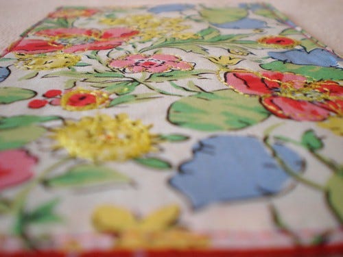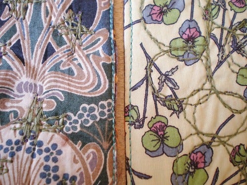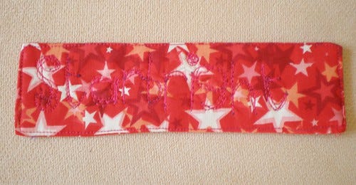 I tried stitching patterns and following the outline of the fabric design, but ended up liking the writing best. The others were still quite sweet though.