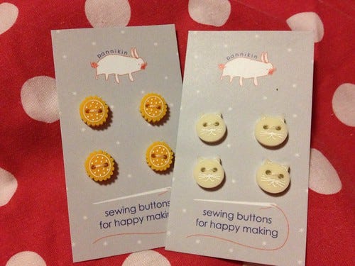 Squuuuuuueeeee! Could not be happier. They got here amazingly quickly from Australia AND free postage AND half price. Her Etsy Shop is here. She has other buttons, earrings and lots of other very beautiful stuff. Definitely to be recommended.