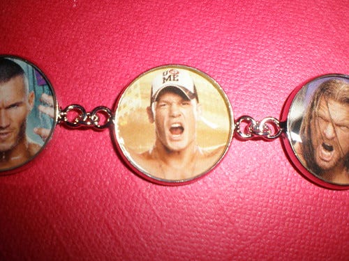I thought I'd have a go at some distractions other than knitting. After the success of my resin experiments a few weeks back the bracelet blanks I ordered duly arrived and I poured my WWE bracelet last night.