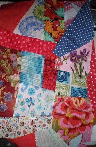 I used whatever small bits I had left over - including some Liberty swatches Purlpower gave me in a swap. These swatches have been so useful in lots of projects and are not something I ever would have bought myself. It just goes to show how swaps can introduce you to something new. I also used them in a couple of xmas presents I'm not sure I ever blogged about.