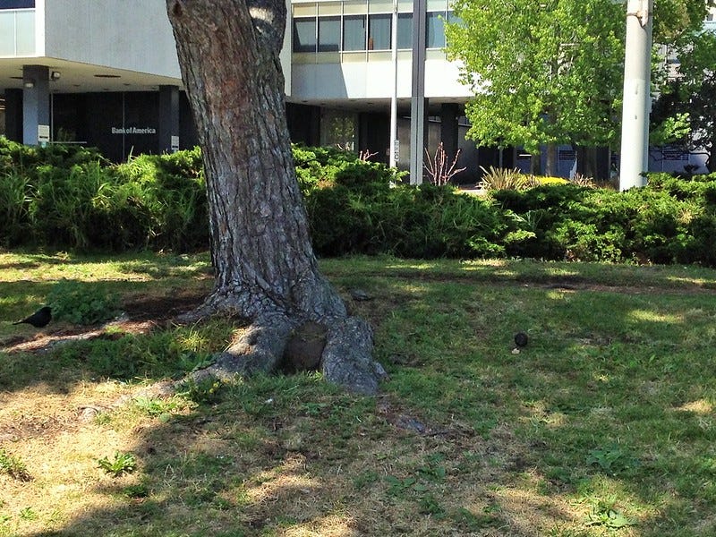 There weren't any ducks visible but there were geese flying about and also the usual urban birds. A blackbird had found a chunk of bread and was about to fly off with it when something slightly bigger - possibly a Thrush? - strong-armed it away from him. To add insult to injury, the Thrush didn't even fly off but just sat there munching on it.