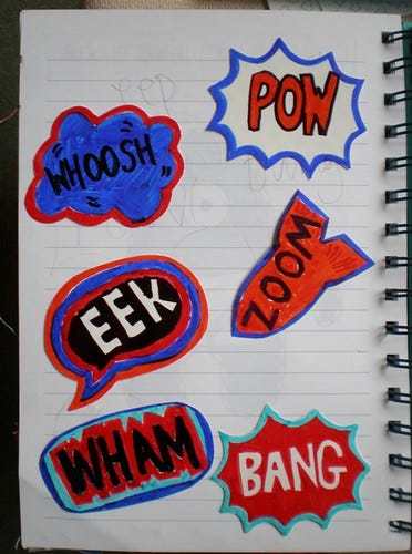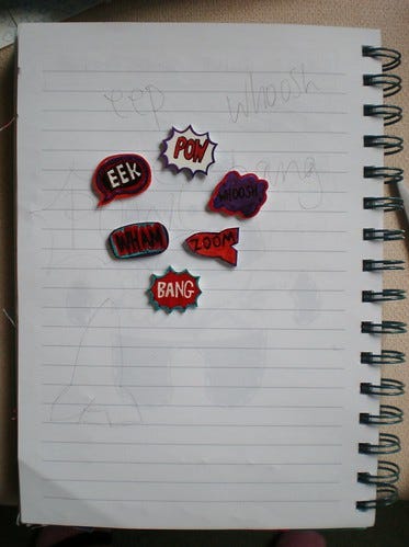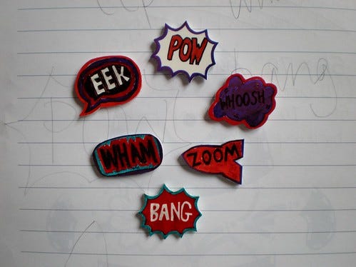 On the plus side I got to see which colour combos work best. I'll be doing this again AND making holes next time. I've used the three best - pow, eek and bang - to make a brooch so they won't be wasted.