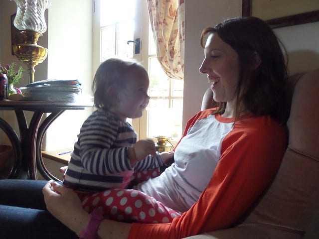 She and my sister came over to my Mum's for the weekend and Mum has stone floors downstairs. Jasmine's little hands went 'slap slap slap' as she sped off across the floor, which I am sure is just what noise a running penguin would make were we to have one handy. She has added some new faces to her repertoire, of which I captured this one.