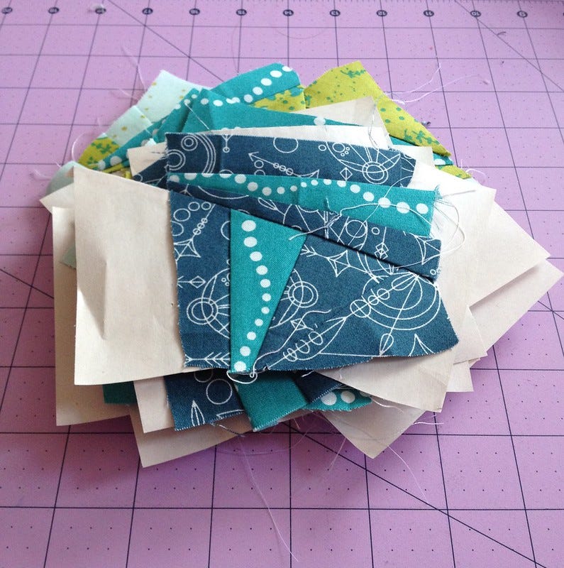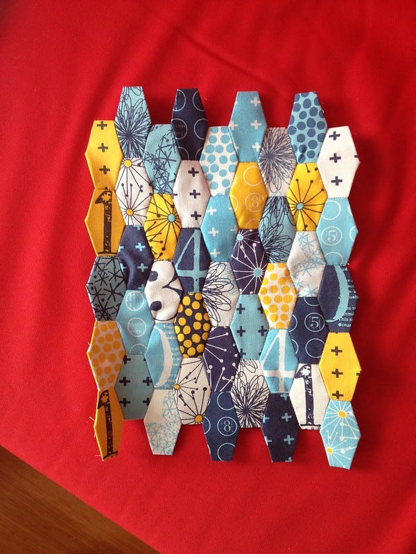 I saw a few of these being made on Instagram and was thrilled to find the pattern was free. It is the Oh, How Sweet Zipped Case. I started off thinking I'd use my newest paper shape from PaperPieces.com - the squashed hexagon.