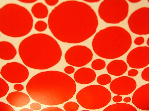 Living in a boy's flat (he owns it and lives by himself) is quite interesting in itself because there are no feminine touches anywhere. There is nothing to hang washing on for instance - because he just hangs it over chairs or on the back of doors. There are also no cushions. Not one. He's told me to do whatever I want to make myself comfortable but there's only one thing I've done so far. The doormat looked like roadkill so I have bought him a red and white polka dot one, which looks nothing like this picture.