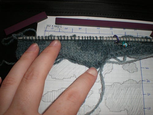 ...but that colourway didn't give me the contrast I was after. I'm now wondering about using the kauni as the background colour and dyeing something for the clouds in a more variegated white/grey colourway. Thoughts?
