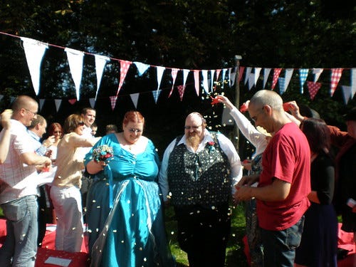 The wedding of Nickerjac and Andy took place last Saturday. It really was lovely. Jane had lent her family home on the Isle of Wight and it was the perfect setting. A beautiful garden was lovingly done up with about a mile of my handmade bunting.