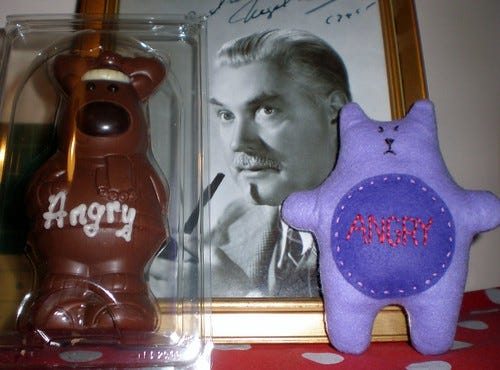 I thought Angry Kitty looked like she needed some cheering up so I stopped off at Thorntons on the way home to find her a friend.