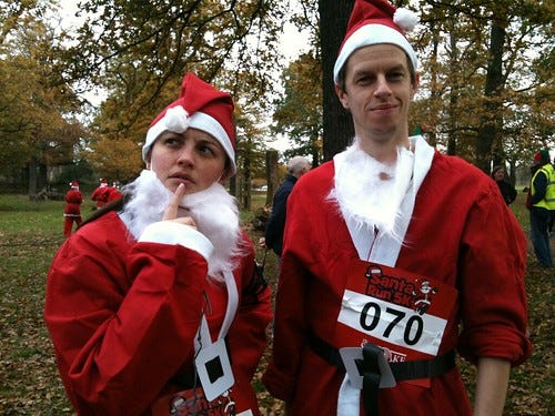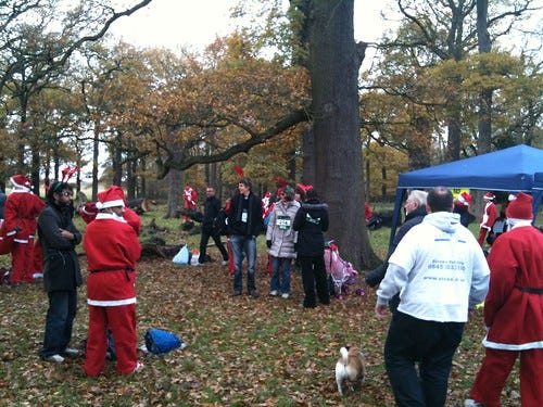 We were supported by my lovely bf and a number of other santas and their families. I think there were about 200 of us all together.