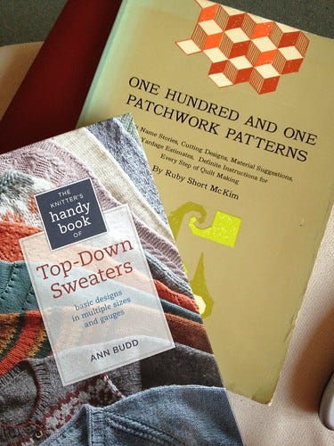 I read about the Ann Budd at the weekend and knew it had to be mine. I'm always trying to reverse engineer the Ann Budd Sweater Patterns books to be top down. An added bonus is the chapter on contiguous set in sleeves. I've been wanting to try those for ages and now I have the courage to go for it.