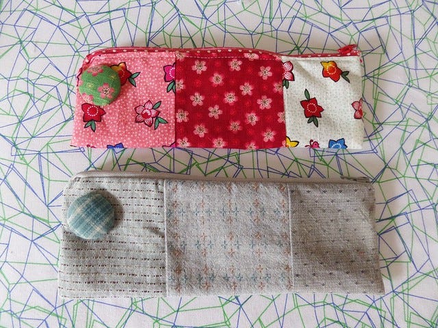 Well, you know. We live and learn. That's another one I'm fond of. Also "The heart is a muscle..." speech by Bill Murray from Charlie's Angels - the one that came out in 2000. Plus 'Many a mickle makes a muckle'. And of course Terry Pratchett's "We've all passed a lot of water since then" when reflecting on the past. So I made these simpler DPN zippered cases using traditional japanese fabrics and a fabric covered button using something matching.