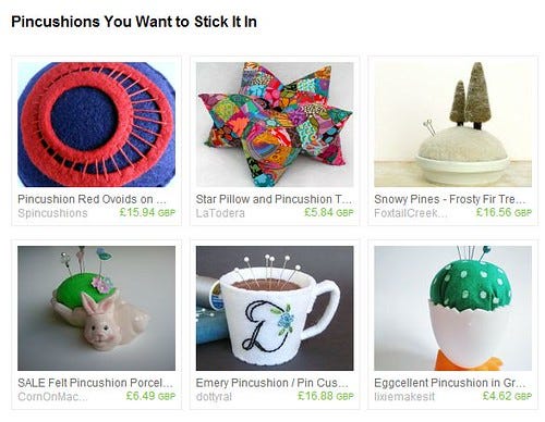I have been making pincushions over the weekend. Led me to create my first ever Treasury on Etsy.