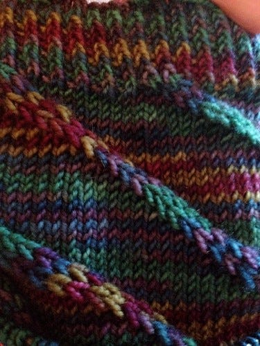 They are Down the Rabbit Hole - a free pattern on Ravelry. Until now I've never got the hang of travelling stitches or of cabling without a needle. Now? Ha! I am so doing it like it's 1999. Neeeeoooow my cables are progressing at such high speed my fingers are a blue. Kinda. I'm turning the heel on the first one anyway.