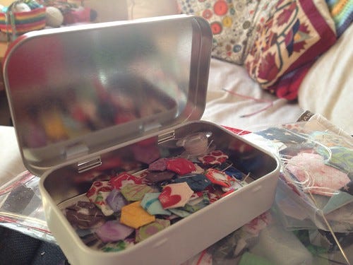 Note to self - cut fabric proportionally bigger than you would for 1" hexagons. They are *so* fiddly.