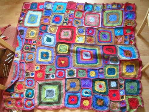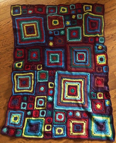 This is the one I started when we first got here as a replacement for the full size Babette Blanket I made about 7 years ago in London...