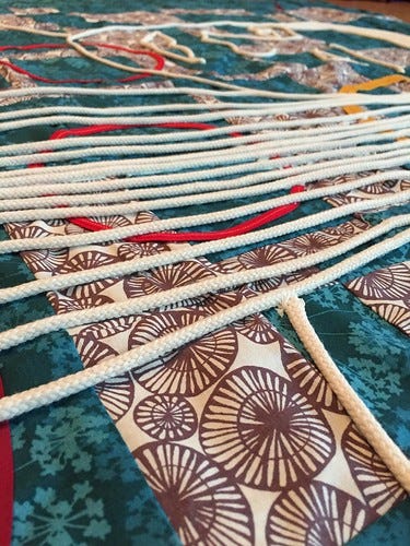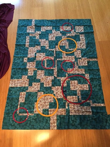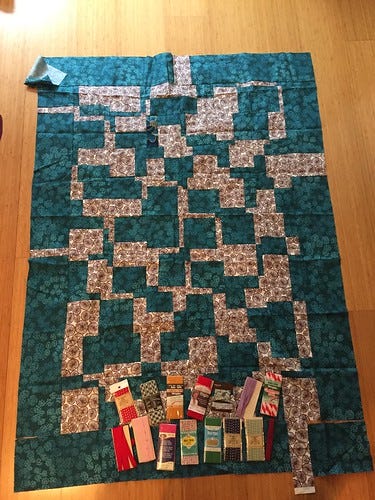 The one thing I always hear from quilters is that the way to develop is to work in a series. So it will come as no surprise to hear that I have already cut out and sewn the base of the next one! I did fairly amaze myself since in the past it has taken me years to cut out and sew a quilt. In this case it took about 5 hours. It just goes to show the power of motivation.
