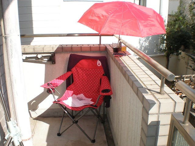 I am so lucky. Don't think I don't know and appreciate it! I never thought I'd not be working when we came over here but I am so happy it turned out this way. It has meant I've had to improve my cooking skills and I have had to do far more cleaning than I would like, but the benefits outweigh that! For instance, the weather here is more like british summer then spring already. It's been at least 18 degrees the last few days and it went up as high as 23 on Monday. Which is when I set myself up like so on the balcony...