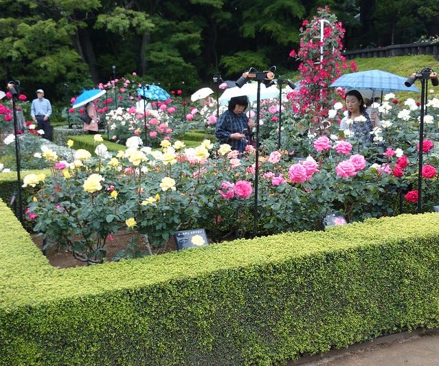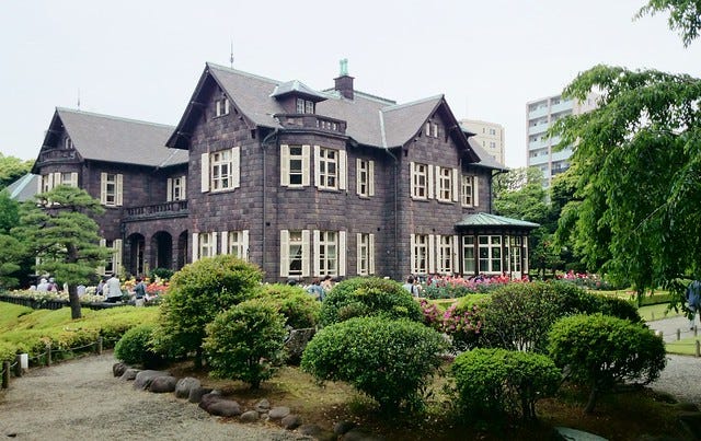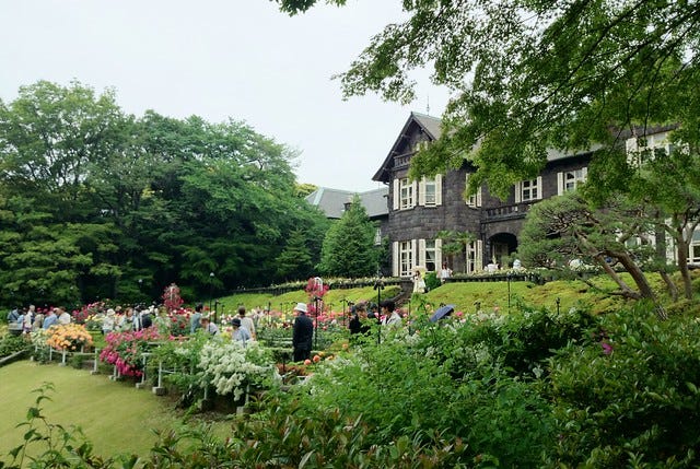 Yesterday I had an outing in the rain to Kyu-Furukawa garden. There is an english-ish house and a formal english garden, then below that is the traditional japanese section. This was Walk 7 in the Flower Lover's Guide to Tokyo and the book lives up to expectations. You start at one station and end at another so you get to see all the bits in between as well as the garden. Traditional shopping streets...