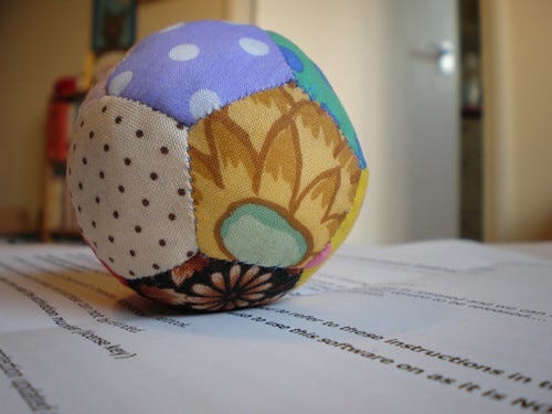 I made my cat-to-be a toy this week. I've been meaning to try one of these for ages and thought it might work as a christmas tree decoration with the right fabric. So I got a load of small scraps for a try-out and here you are.
