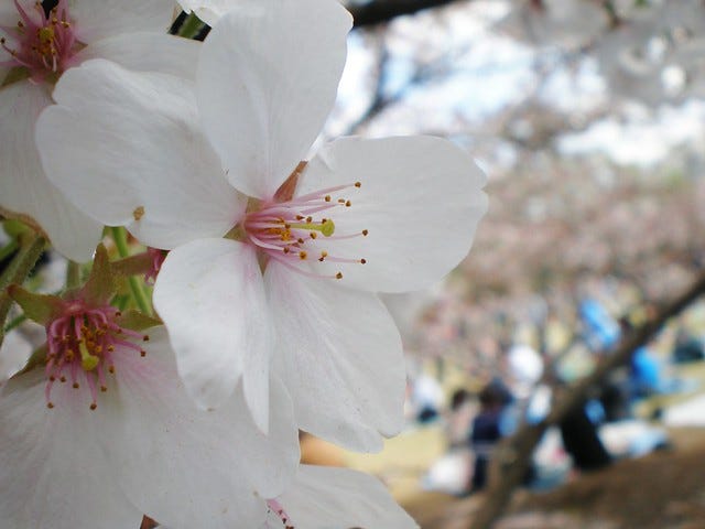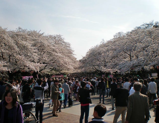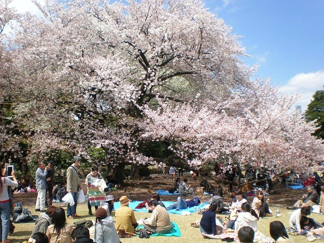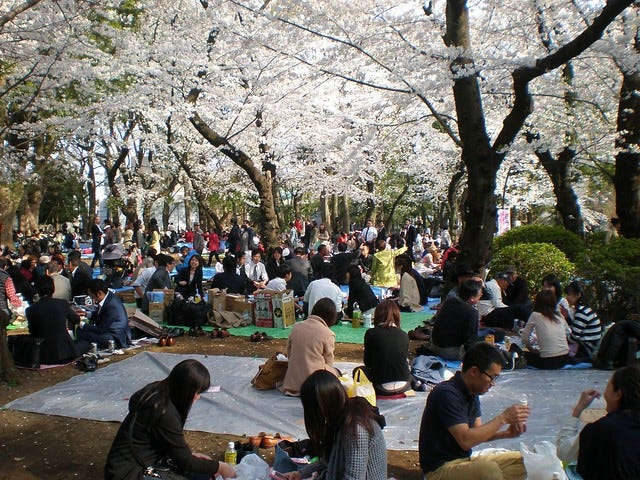 Wherever you find blossom you will also find Hanami Parties sitting on their large tarpaulin sheets under the tress.