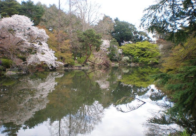 As you can see at the far end of the pond, this park is famed for its walkways where there is blossom on both sides and it often meets overhead.