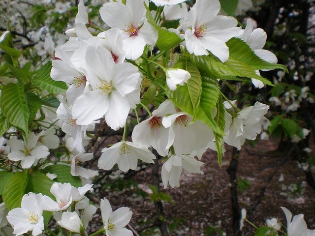 Pooch says that once you've seen one cherry tree in blossom you've seen them all. I disagree, which is why I have three further gardens to show you, while Pooch spent his time with me at one of them keeping firmly to the footpaths and determinedly not enjoying himself.