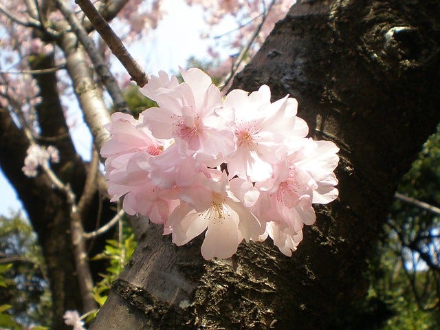 One of the oddities of Cherry Blossom is that as well as the main branches, you get little puffs of it on the trunk itself.