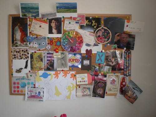A drawing by Nickerjac's little boy, a heart shaped leaf Mary Contrary gave me, my medal form the 10 mile night hike I did for Maggie's, postcards and tickets reminding me where I've been and what I've seen and lots more. There's even a perler star my little brother made me when he was about 3. He just graduated yesterday so that goes to show how old some of these memories are! It's something I'll miss if I do end up in Japan but a new one will undoubtedly appear over there and this one will be carefully dismantled and packed away ready for when I come back.