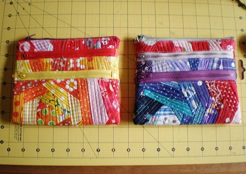I realised that the Triple Zip Pouch Swap posting deadline is Saturday, and while I'd got the fabrics I hadn't done anything about putting them together. That is no longer a problem!