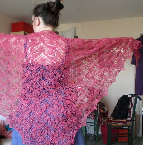 In the same way when I finally unpinned the shawl from blocking and wrapped it around myself I could hear a voice in my head shouting "SHAWL! SHAWL! SHAWL!"