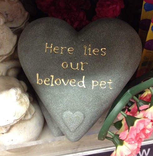 Yesterday was pretty hectic - fabric shopping in the morning followed by 5 hours straight sewing - the results of which will be seen next weekend. During the shopping part I did find a few fairly odd things in the pound shops of Lewisham. I do adore those shops. You never know what craziness you'll see. The winner this time was undoubtedly the pet tombstone.