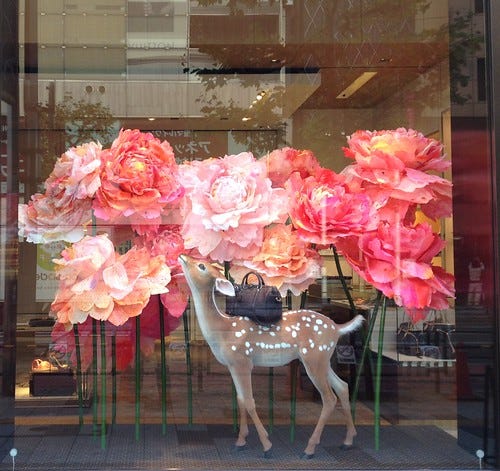 On the whole, I am not a devotee of shop window displays. I used to occasionally stop to admire Liberty's but that was about it. But following Rachel's guest post about christmas windows I have been a bit more aware of them, and the ones in Shinjuku this week definitely caught my eye. I was on one of the main roads near the station and the juxtaposition of the Louis Vuitton opulence with the Oioi (I think) department store nearby was very effective*.