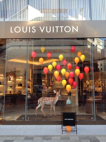 Could they even be inflatable? And what happens to it after this display is done with? Does every LV shop have the same display or were these designed specifically for this space?