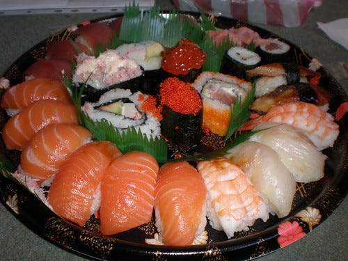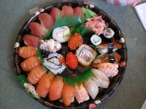 The Sianathon didn't end with cross stitch. We decided to order a little sushi for dinner. I almost passed out with joy when I saw it arrive.