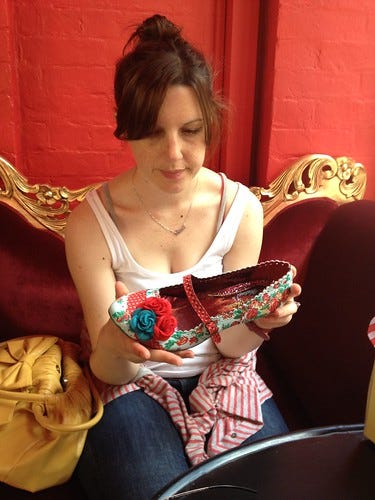 We had accidentally found the wedding shoes in the first shop which theoretically meant game over, go home. But no. Five shoe shops and a Beyond Retro later and my plates of meat were doing the tendinitis tango and I had to head home. Sian bravely carried on. She's a trooper.