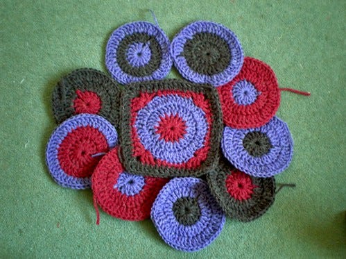 Only a few so far but it just goes to show what a difference a day makes. I was totally against the yarn I'd got for my new afghan last week. This week I'm all about it. I am firmly committed to crocheted afghans. I would love to do a Curve of Pursuit but it's knitting. Something about that just seems wrong.